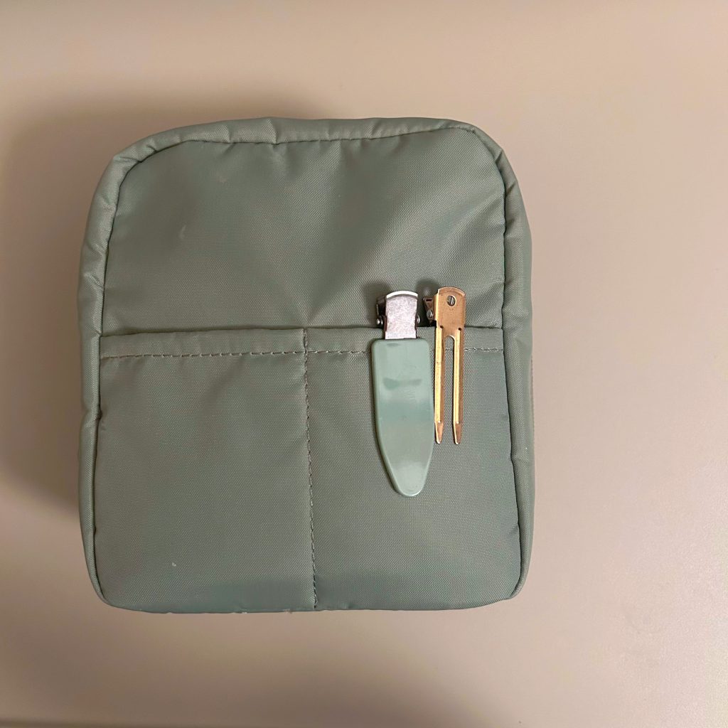 旅行には欠かせないポーチ。ちょっとフカっとしていて中の物が割れなさそうなので安心感もあります。開けた時にガバッと開き、中にポケットもたくさんあり収納力がちょうど良いんです。ちょっと汚いけど使い込んでるという事でお許しを。