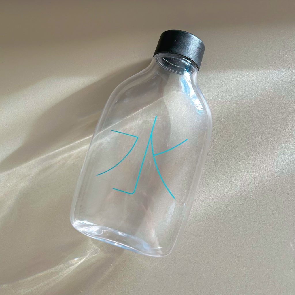 無印良品で購入できる小さいサイズの水のボトルです。これに水を入れて持っていこうと思います。このサイズ私にはすごくちょうど良いです。330ml程入ります。